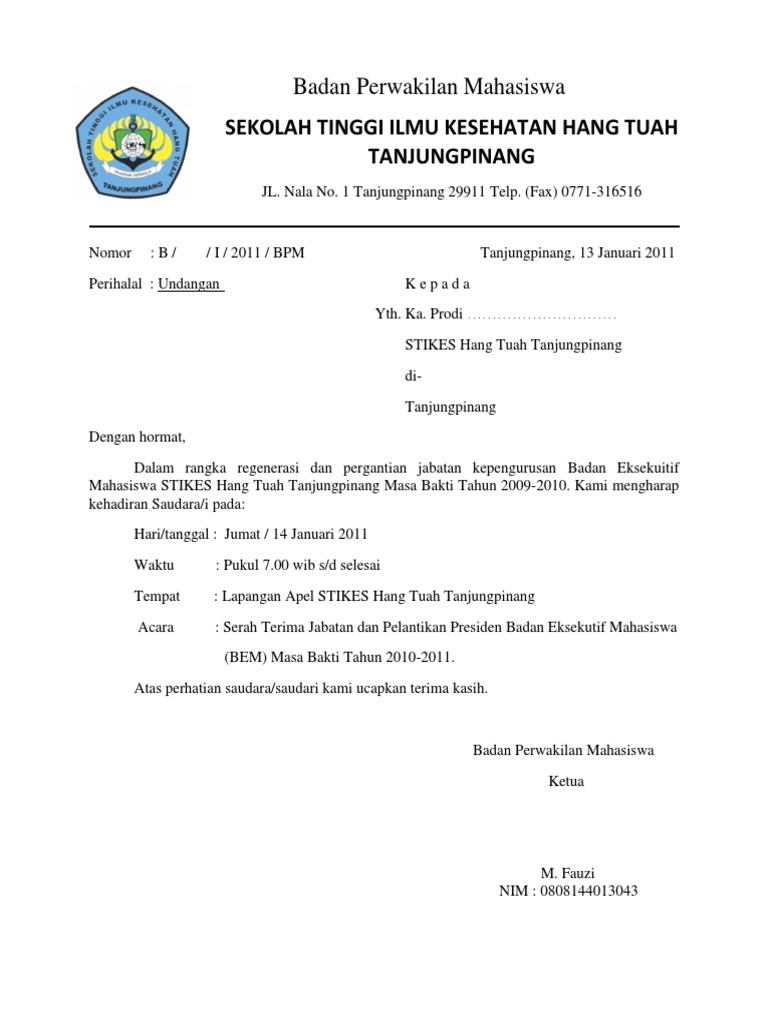 Contoh undangan pelaksanaan pelantikan anggota baru badan eksekutif mahasiswa. Kwarran cibinong yang baru disahkan dengan diterbitkannya surat. A1-XPAN-PEL0012017 04 RabiulAkhir1438 H Lampiran.